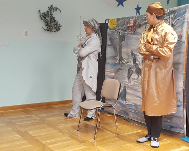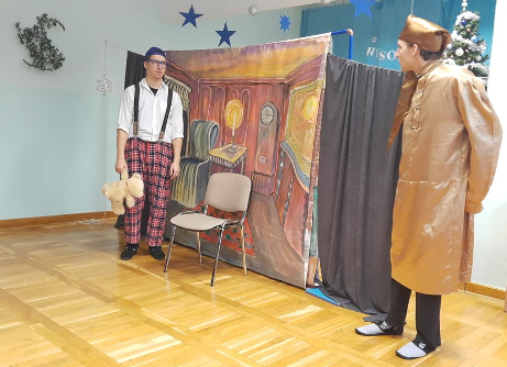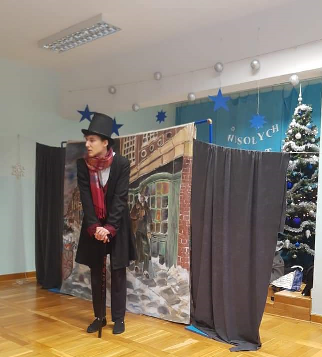 16.12.2021 r. do naszego przedszkola przybył teatr Eden ze spektaklem pt „Opowieść Wigilijna”. Aktorzy przedstawili adaptację powieści Karola Dickensa. Jest to historia o przemianie Ebenezera Scrooge’a. Zakochany we własnych pieniądzach mężczyzna jest samotnikiem, który unika ludzi. W noc wigilijną odwiedzają go trzej specjalni goście, którzy pokazują mu co jest istotą świąt Bożego Narodzenia. Ebenezer Scrooge staje się człowiekiem otwartym na innych. Spektakl uświadamia, że to miłość i rodzina są najważniejsze.