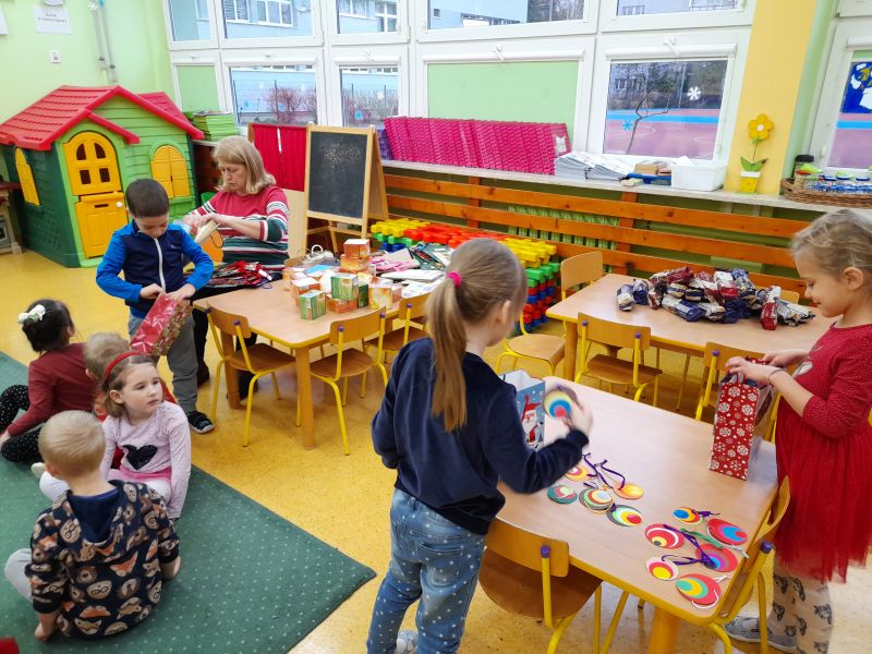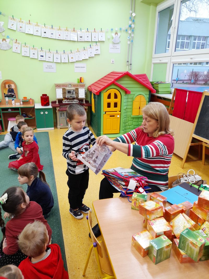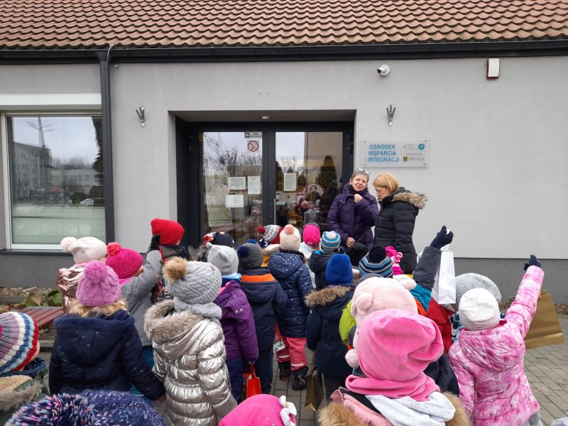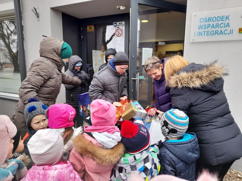 Dzieci z grupy VIII i X okazały wsparcie osobom niepełnosprawnym z Ośrodka Wsparcia i Integracji „Maja”. Przygotowały upominki, ręcznie wykonały ozdoby i kartki świąteczne. Dzieci przygotowane przez siebie paczki zaniosły podopiecznym Ośrodka i zaśpiewały dla nich przepiękną pastorałkę. Tego dnia dzieci mogły zobaczyć, jak ważna jest pomoc osobom potrzebującym.