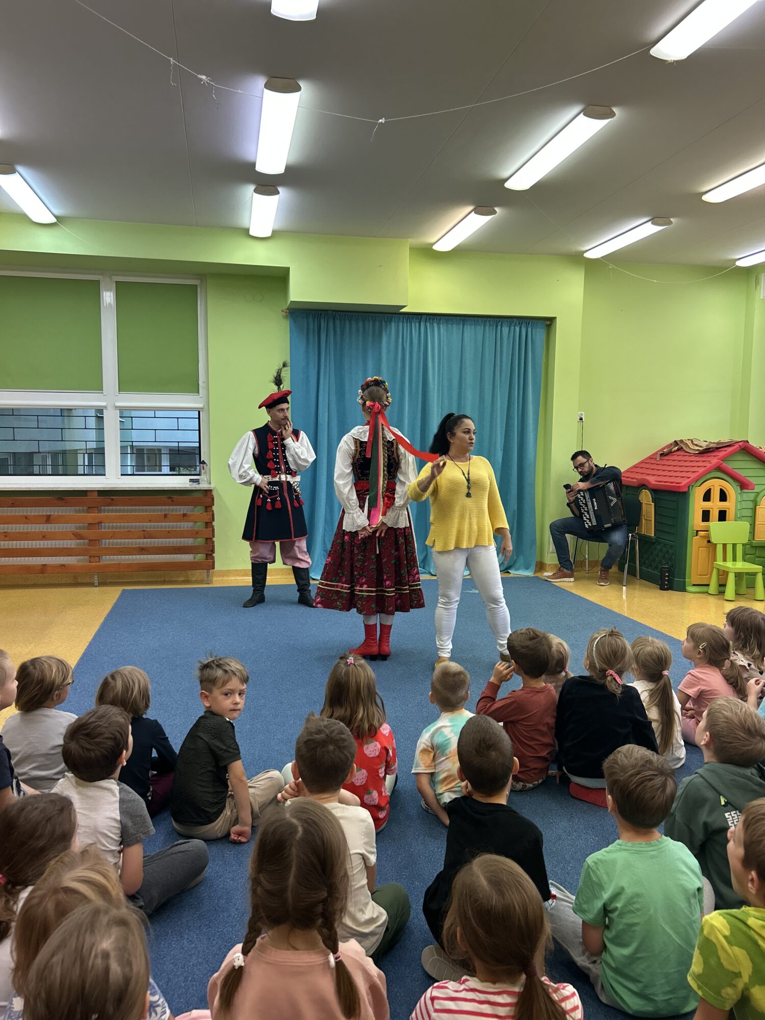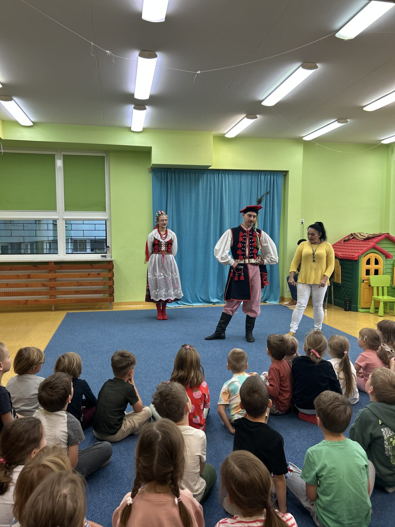 W dniu 18.09.2025 w naszym przedszkolu odbył się występ tańców krakowskich, który wprowadził dzieci w barwny świat polskiego folkloru.