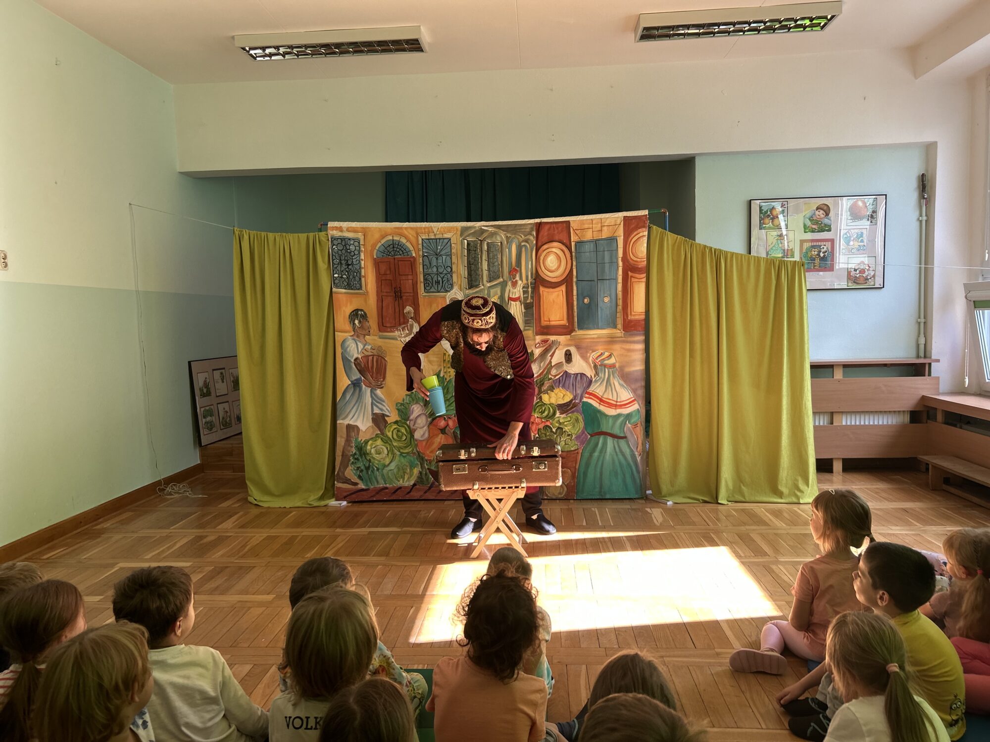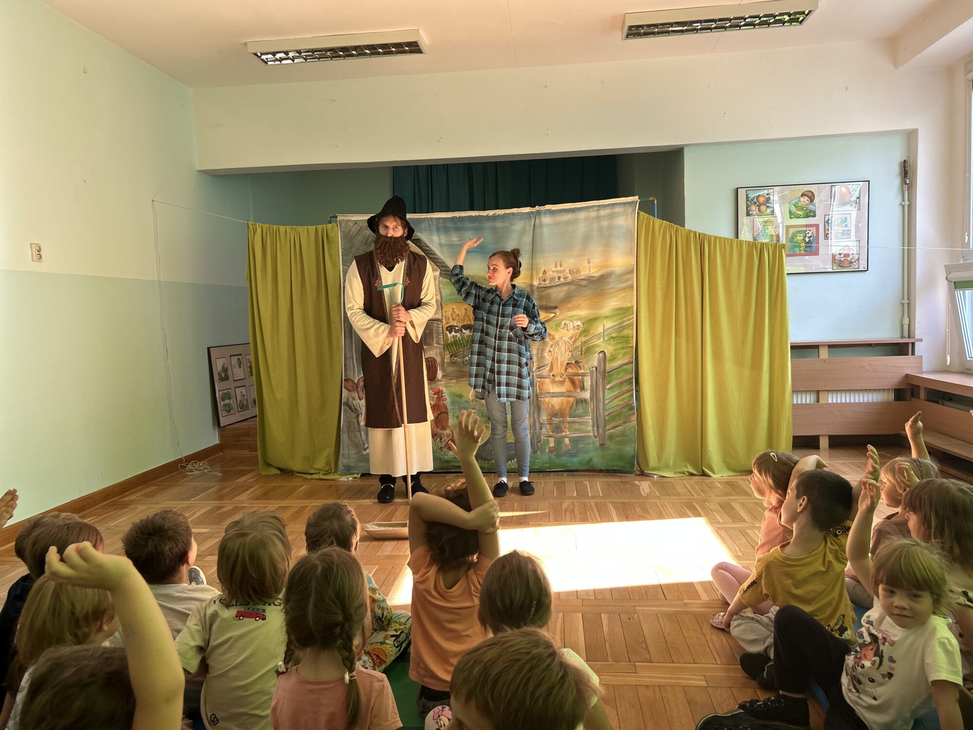 W dniu dzisiejszym (18.09.2025) dzieci miały okazję wziąć udział w przedstawieniu teatru Eden pt. „Prawdziwy skarb”. Dzieci z wielkim zaciekawieniem oglądały spektakl oparty na przypowieści o „ Synu Marnotrawnym”. Przygody dziewczynki, który wyruszył w świat szukać szczęścia pokazały przedszkolakom, że prawdziwym skarbem są: rodzina i przyjaciele.
