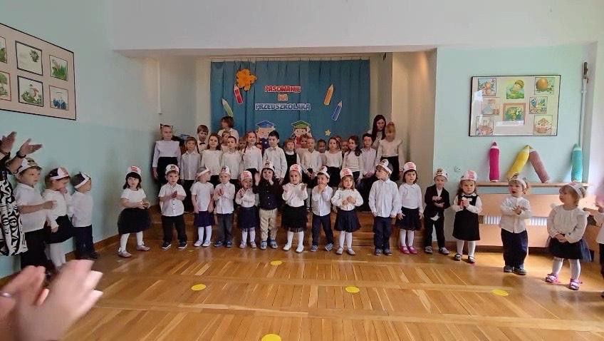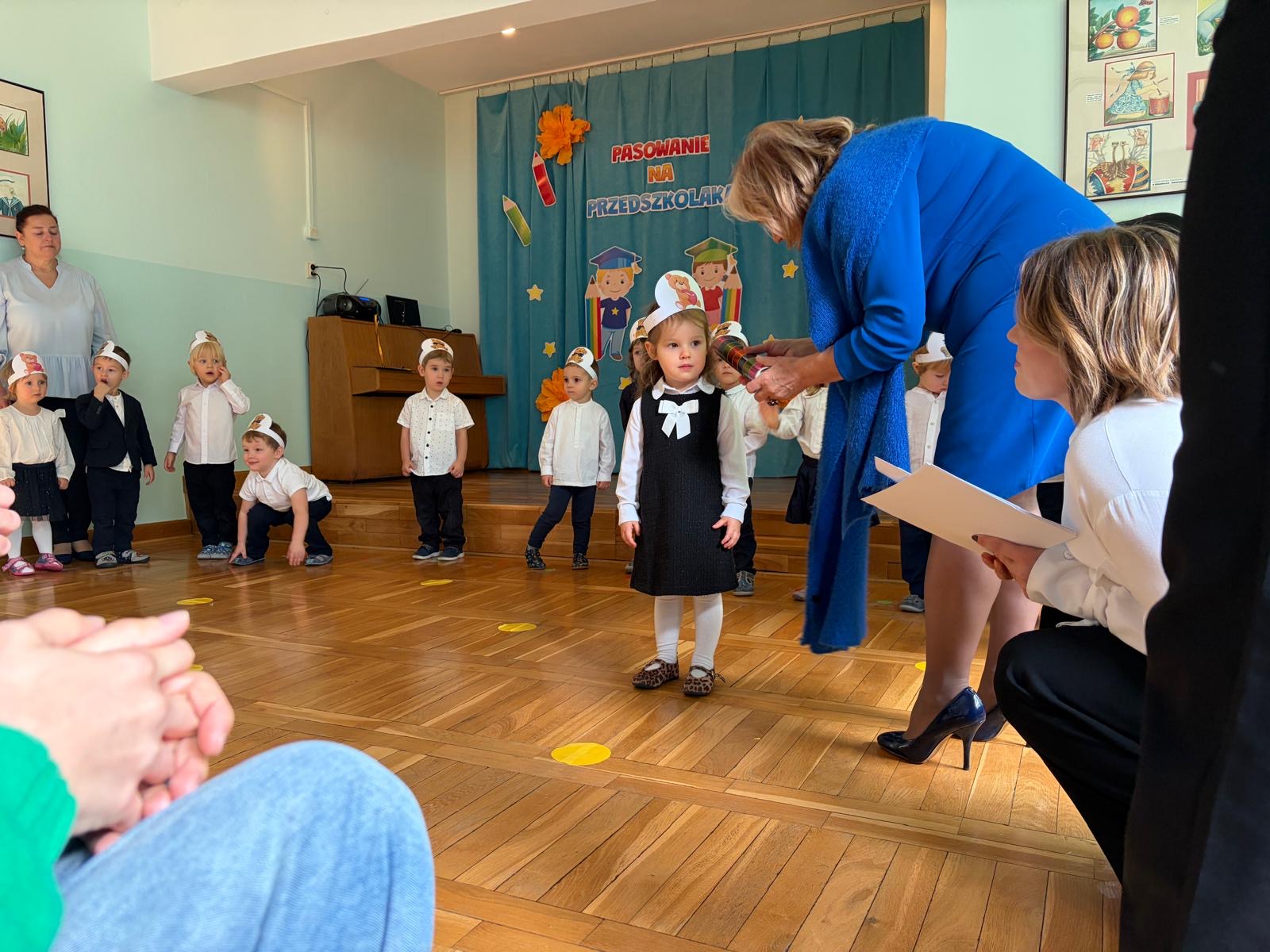 Dzieci z wielką odwagą zaprezentowały przygotowany program artystyczny, po czym nastąpił najważniejszy moment – pasowanie. Każdy trzylatek został uroczyście „włączony” do społeczności naszego przedszkola, symbolicznym dotknięciem ogromnego ołówka przez Panią Dyrektor.