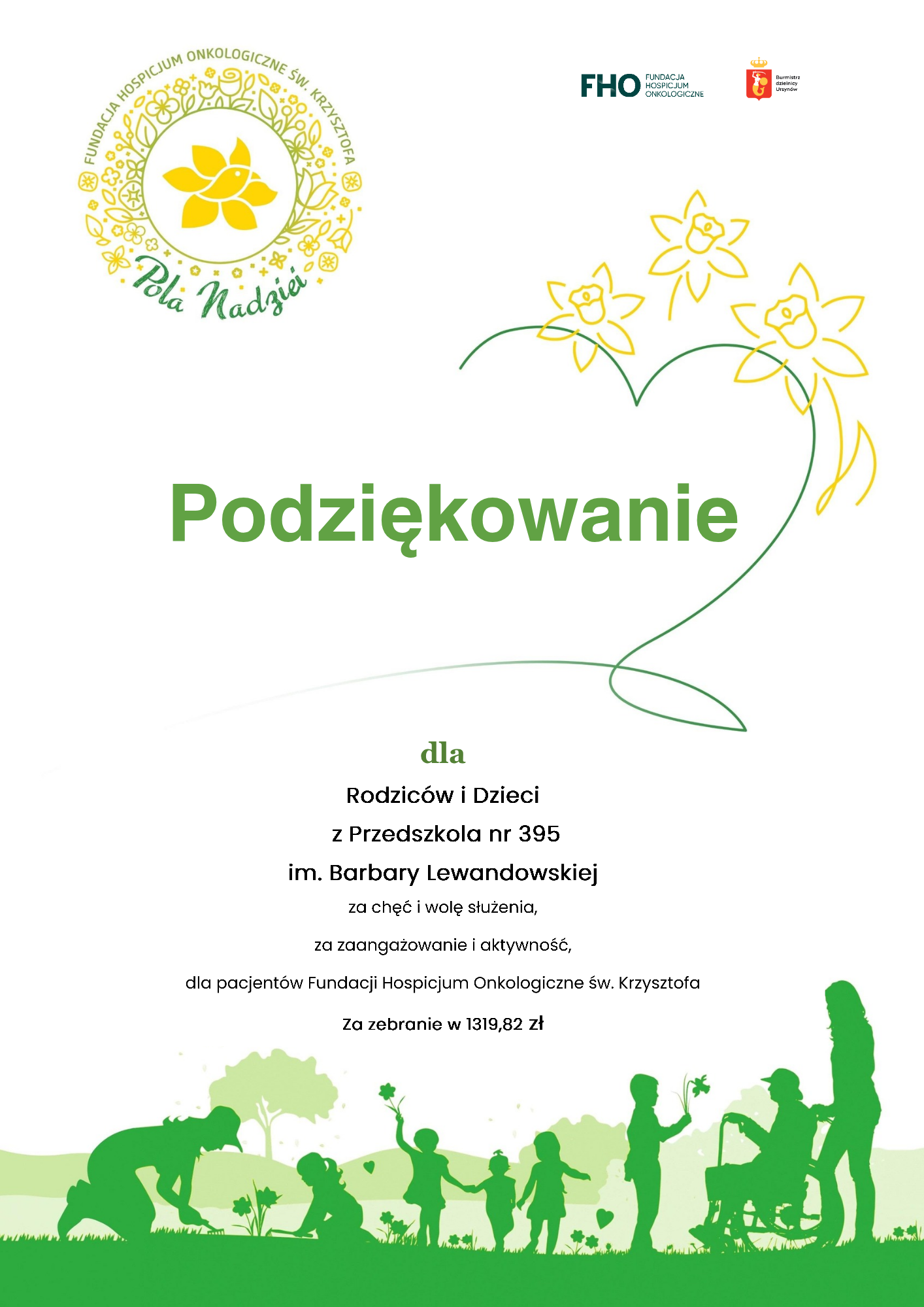 1 kwietnia w naszym przedszkolu odbyła się kwesta na rzecz podopiecznych Hospicjum Św. Krzysztofa na Ursynowie. W inicjatywę zaangażowali się nauczyciele, rodzice i przedszkolaki pokazując jak wielką siłę ma wspólne działanie.
